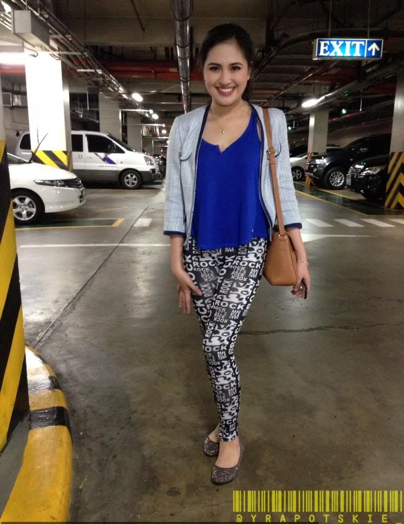 Blue and black seem to be colors that Japs love to play with when dressing up. Aside from these colors being fairly neutral and not very girly, they also give off a simple and sophisticated vibe that is exactly our princess' style. But neutral and simple does not mean not fun. Given the right combination of hues (light to dark) and textures (tweed to cotton to elastic), an outfit can easily become casually fab. Japs below is shopping at Vans, filling up her swag bag. Then she went off to dinner with some friends. What do you think of her look? ;)